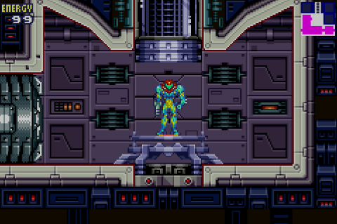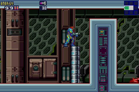 This appears to be a concession to Game Boy Advance’s more limited interface; with only two face buttons to work with instead of four, Metroid Fusion streamlines its controls so that holding down the R trigger activates your alternate fire mode for all weapon types. You no longer need to cycle through your weapons this way, so everything feels more immediate and responsive. On the other hand, you do lose out on the tactical aspects of Super Metroid‘s Super Missiles: They were more scarce, but far more powerful, and had interesting secondary effects in certain places (e.g. triggering Phantoon’s alternate attacks, knocking hidden enemies loose). So, a tradeoff.