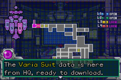 But thankfully, the Varia will finally become available, protecting you from heat and cold. This all sounds interesting in terms of game mechanics, but it’s disappointing that Fusion once again robs you of the discovery process, spoiling the surprises in store for you with a mission briefing. There’s no reason players couldn’t figure out the hazards of Sector 5’s climate through experience, just like we quickly realized that wading in magma was a bad idea. And the danger of blue X parasites would have been wholly self-evident as well, with the unannounced acquisition of the protective Varia suit resulting in a welcome sense of relief.